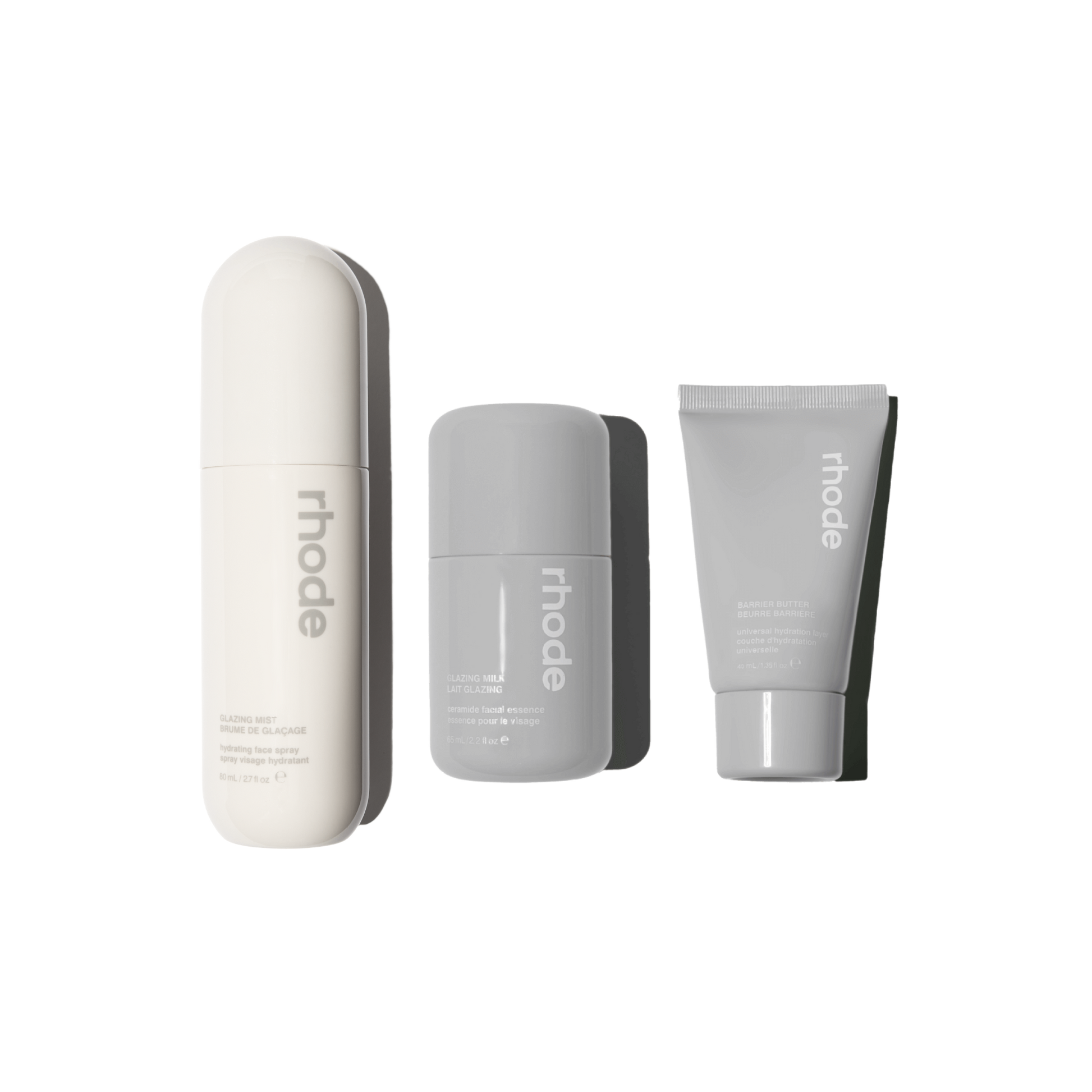 Includes 3 products: full-size Glazing Mist (80mL, 2.7 fl oz), mini Glazing Milk (65mL / 2.2 fl oz), and mini Barrier Butter (40mL / 1.35 oz).